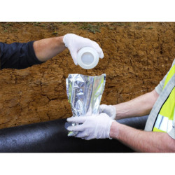 Kit de reparación de emergencia para el control de fugas en todo tipo de tubos de 32 hasta 1200 mm. POW-R WRAP son bandas termoquímicas extra flexibles con carga de fibra de vidrio, son activadas simplemente con agua para lograr resistentes reparaciones de uso permanentes o de emergencia en tuberías O.D. de 30 hasta 1200 mm. Los ductos y fittings podrán contener agua, agua caliente, ácidos, aceites, combustibles, gases y otros químicos.